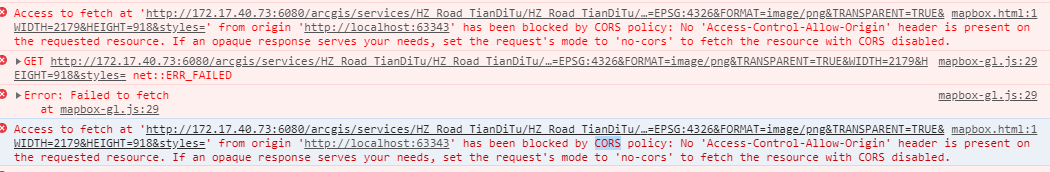 在使用ArcGIS 发布一个WMS 服务,同时用OpenLayers,LeafLet以及MapBox 加载,在OpenLayers和LeafLet 中均可正常加载,但在MapBox 中加载出现跨域请求现象
